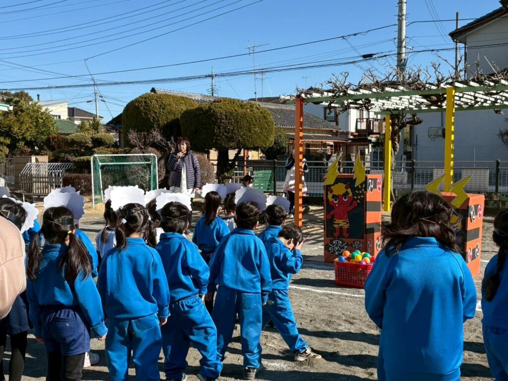 今日は節分。園庭では豆まき大会が行われました😊