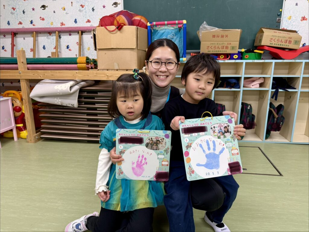 最初は3月うまれのお友だちと先生のお祝いをしました。お誕生日おめでとうございます。
