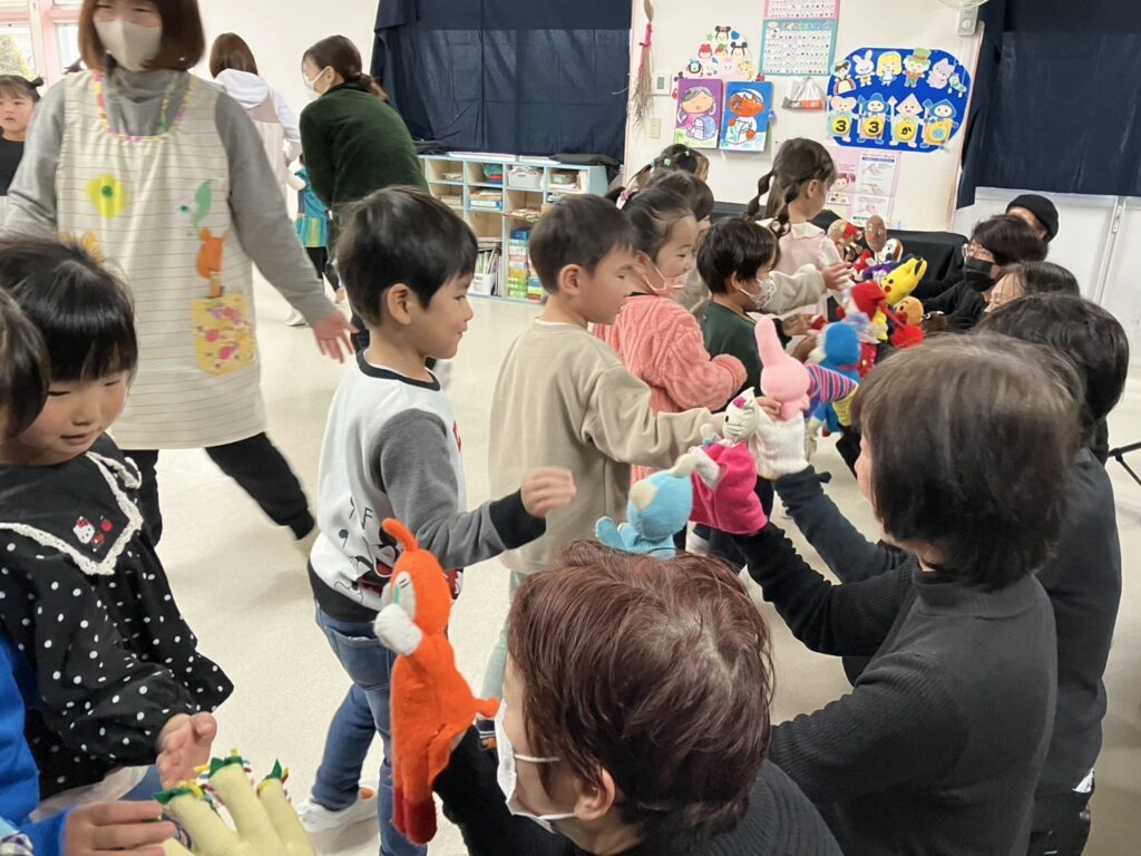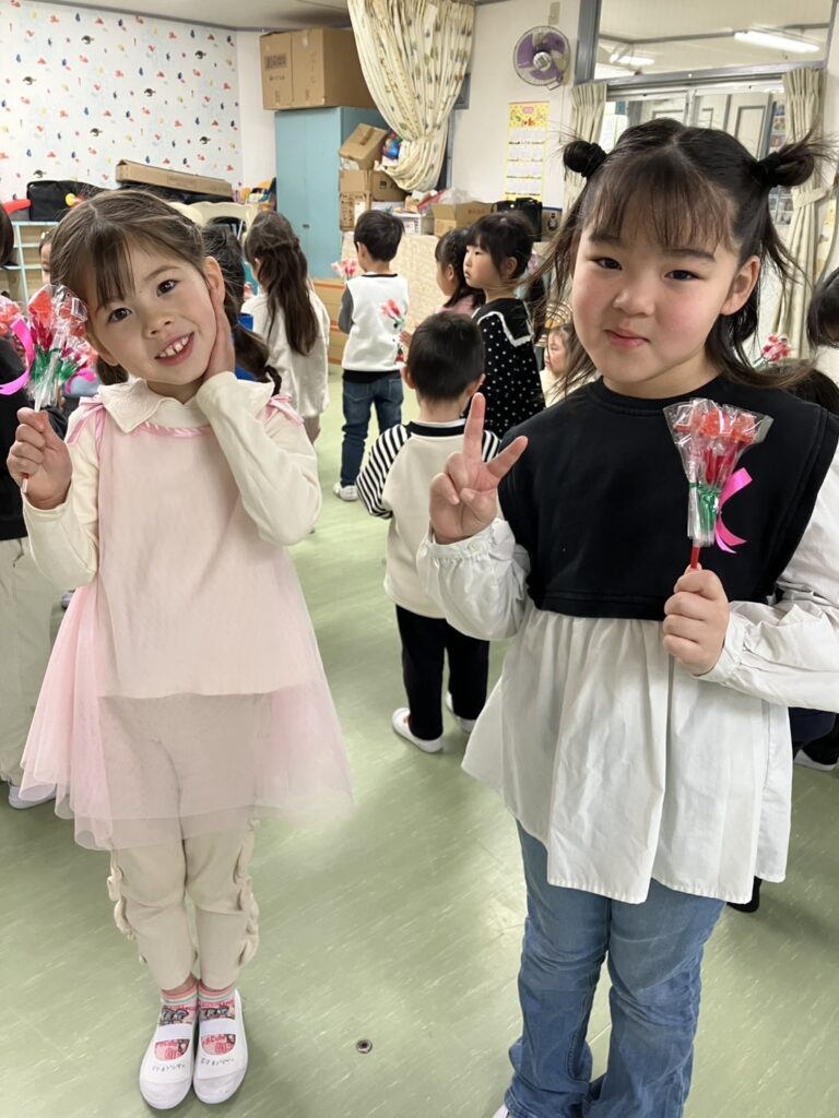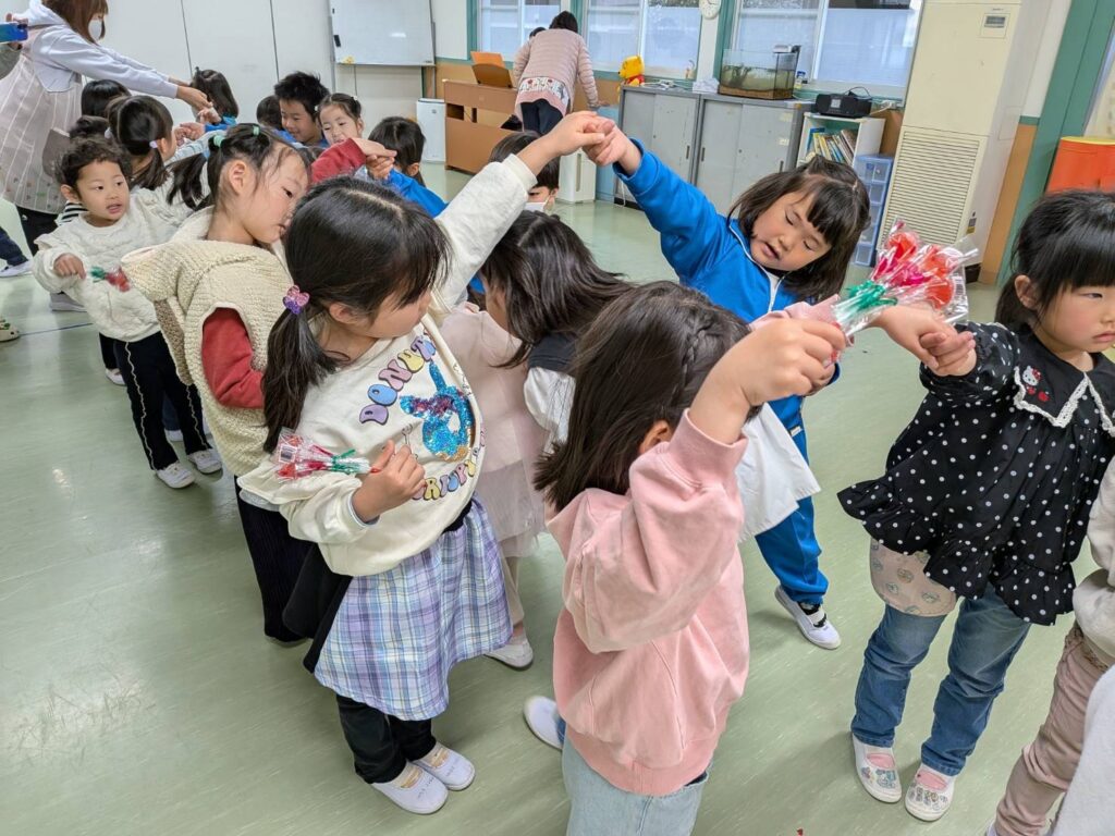 ゆり組さんとは、後少しでお別れです。今まで遊んでくれてありがとうの気持ちを込めて飴🍬の交換をしたり、思い出のアルバムをうたいました。